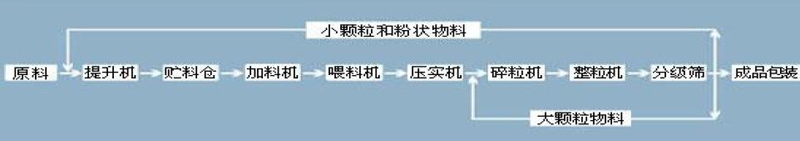 ◆高速混合后的电池粉用提升机送入脱气料仓(搅拌器),脱气螺旋将物料压入强制喂料机,喂料机强制给压辊喂料,经过挤压物料后成片,再通过破碎系统将片状物料破碎,形成颗粒与粉末的混合物,最后筛分机筛分出成品颗粒,大于成品的颗粒和细粉重新回到系统里循环制粒。
